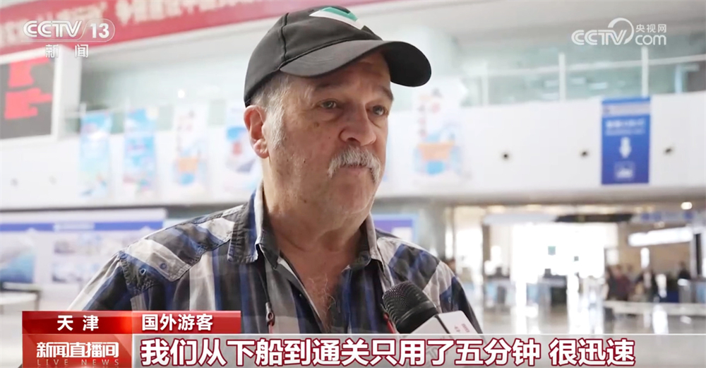 國外游客稱:“這是我第二次來中國,每個人都很友善。我們來是為了度假,我們從下船到通關(guān)只用了五分鐘,很迅速?!?/p>