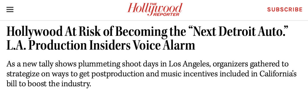 ||《好萊塢報道者》發(fā)表題為《好萊塢或成為下一個底特律》的文章,指出好萊塢最后可能只剩一具空殼。