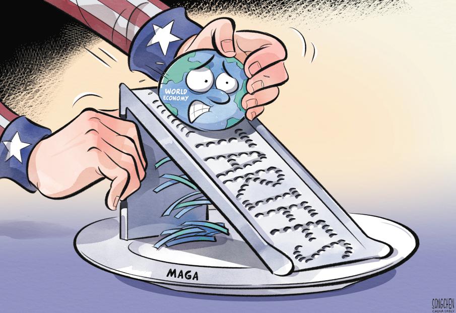 美國“對等關(guān)稅”引發(fā)連鎖反應(yīng),關(guān)稅給世界經(jīng)濟(jì)帶來巨大震蕩。(作者:中國日報(bào) 宋晨)