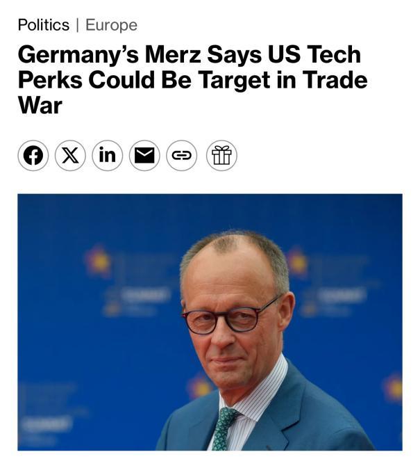 德國總理默茨:“目前,美國科技公司在歐盟受到‘大力保護(hù)’,包括在稅收方面,而這種情況可以改變。我并不想讓對抗升級,而是希望共同解決這個問題。在歐盟看來,貿(mào)易戰(zhàn)沒有贏家。(可是)在美國看來,關(guān)稅能夠單方面保護(hù)美國經(jīng)濟(jì),也是一種‘零和游戲’,即當(dāng)歐盟經(jīng)濟(jì)變得更糟糕時(shí)對美國有利。”