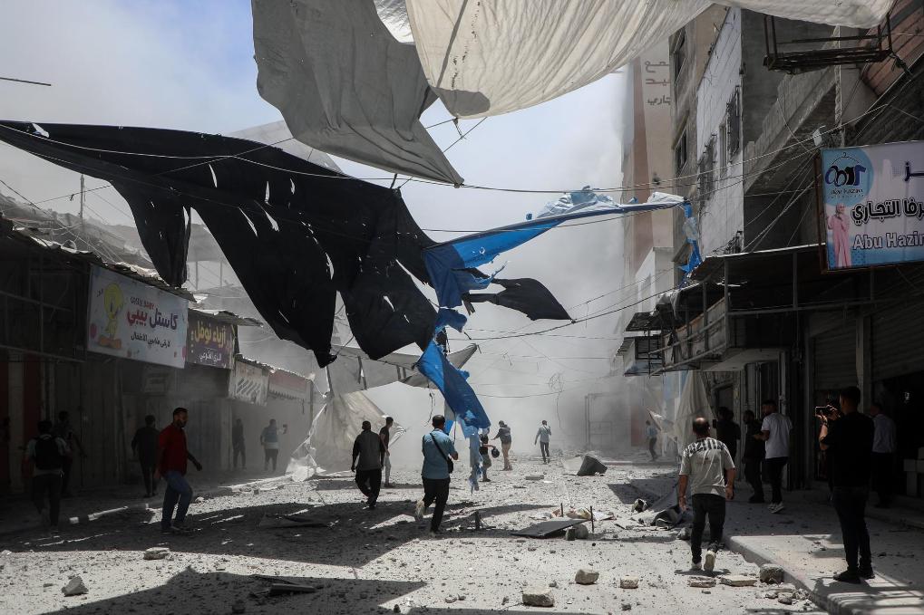 5月31日,人們在加沙城查看遭以軍襲擊后的廢墟。新華社發(fā)(里澤克·阿卜杜勒賈瓦德攝)