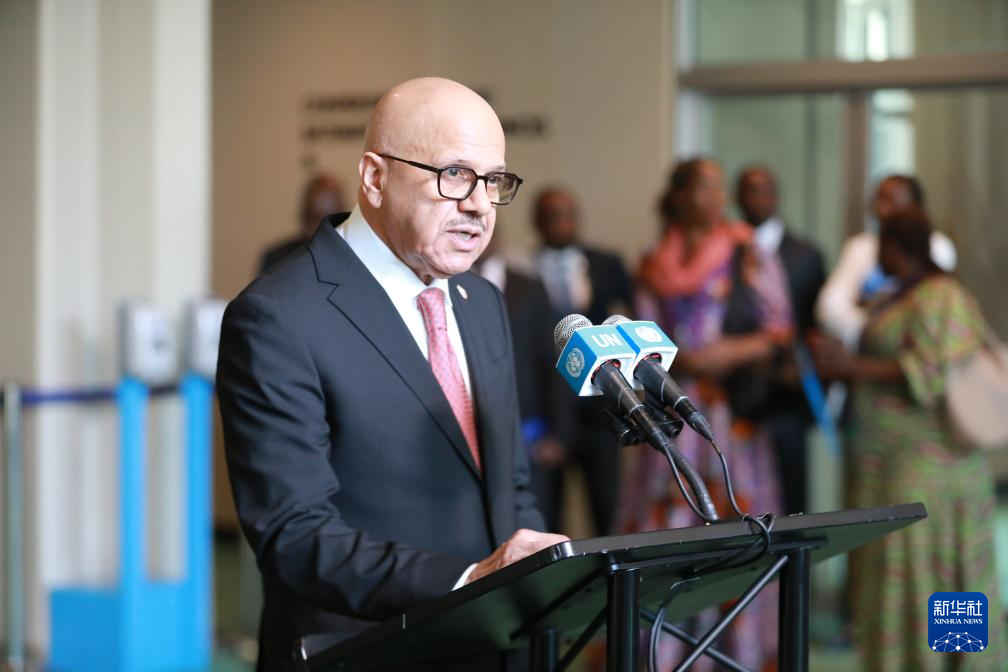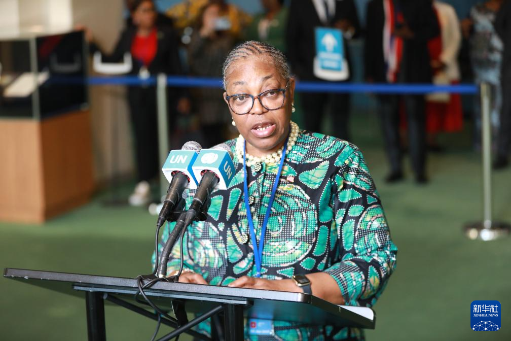 6月3日,在位于紐約的聯(lián)合國總部,利比里亞副外長格雷在利比里亞當(dāng)選聯(lián)合國安理會非常任理事國后講話。新華社記者 謝鍔 攝