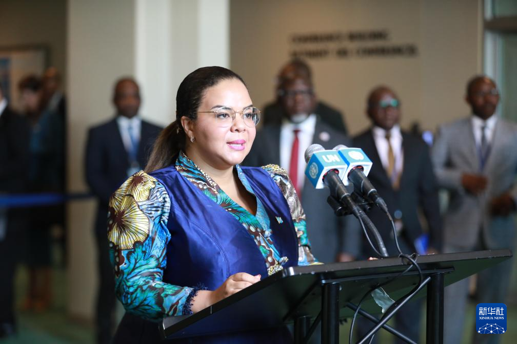 6月3日,在位于紐約的聯(lián)合國總部,剛果(金)外長泰蕾茲·卡伊寬巴·瓦格納在剛果(金)當(dāng)選聯(lián)合國安理會非常任理事國后講話。新華社記者 謝鍔 攝