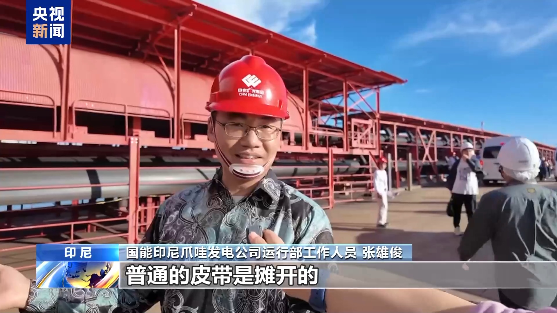 國能印尼爪哇發(fā)電公司運行部工作人員 張雄俊:普通的皮帶是攤開的,但你看,我們這有3.6公里長的(管狀)皮帶,我們是管帶機,那就是為了環(huán)保。