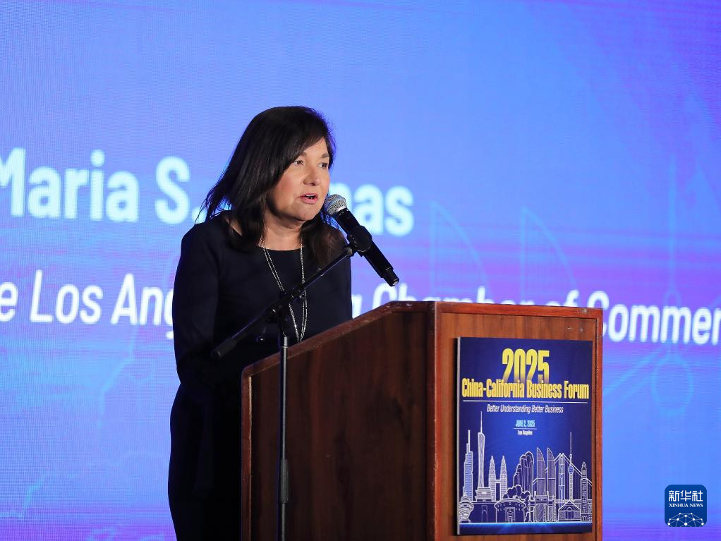 6月2日,在美國洛杉磯,洛杉磯地區(qū)商會主席瑪麗亞·薩利納斯在2025年中國—加州經貿論壇上發(fā)表講話。新華社發(fā)(邱晨攝)