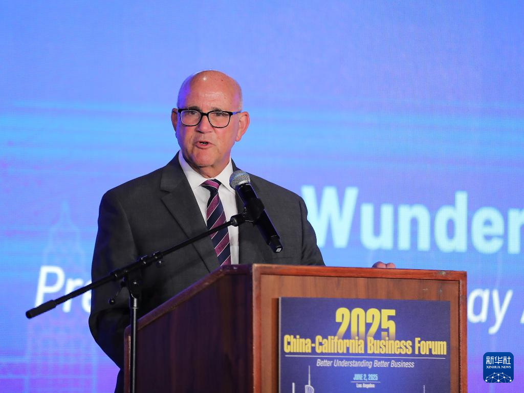 6月2日,在美國洛杉磯,舊金山灣區(qū)委員會主席吉姆·旺德曼在2025年中國—加州經貿論壇上發(fā)表講話。新華社發(fā)(邱晨攝)