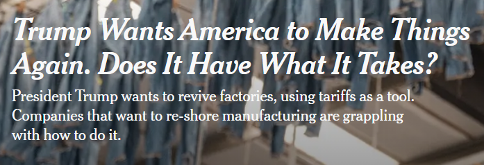 美國政府挑起了一場全球貿(mào)易戰(zhàn),它賭的是對其他國家征稅將會讓就業(yè)和工廠“重回”美國。然而,《紐約時報》近日發(fā)表的一篇文章對這一策略提出了強(qiáng)烈質(zhì)疑,并揭示了美國制造業(yè)回流面臨的巨大挑戰(zhàn)。