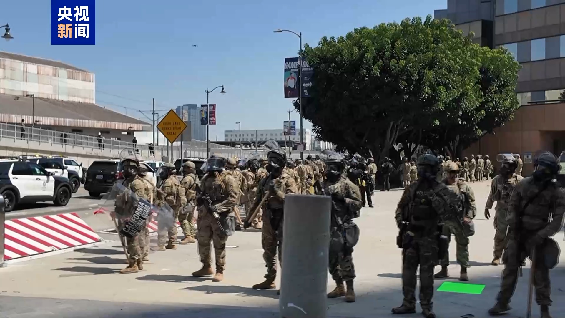央視記者 劉驍騫:同時(shí),美國(guó)國(guó)民警衛(wèi)隊(duì)已部署在現(xiàn)場(chǎng)。這些荷槍實(shí)彈穿著迷彩服的士兵就是特朗普政府部署的國(guó)民警衛(wèi)隊(duì)隊(duì)員,他們?cè)趲讉€(gè)小時(shí)前,也就是當(dāng)?shù)貢r(shí)間8日上午入駐到這里。根據(jù)官方消息,目前已經(jīng)有至少300名國(guó)民警衛(wèi)隊(duì)隊(duì)員抵達(dá)洛杉磯。
