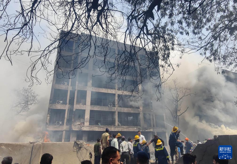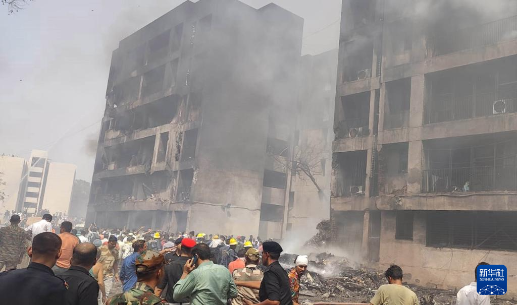 6月12日,在印度古吉拉特邦艾哈邁達(dá)巴德,人們在客機失事現(xiàn)場進行救援。新華社/印度聯(lián)合新聞社