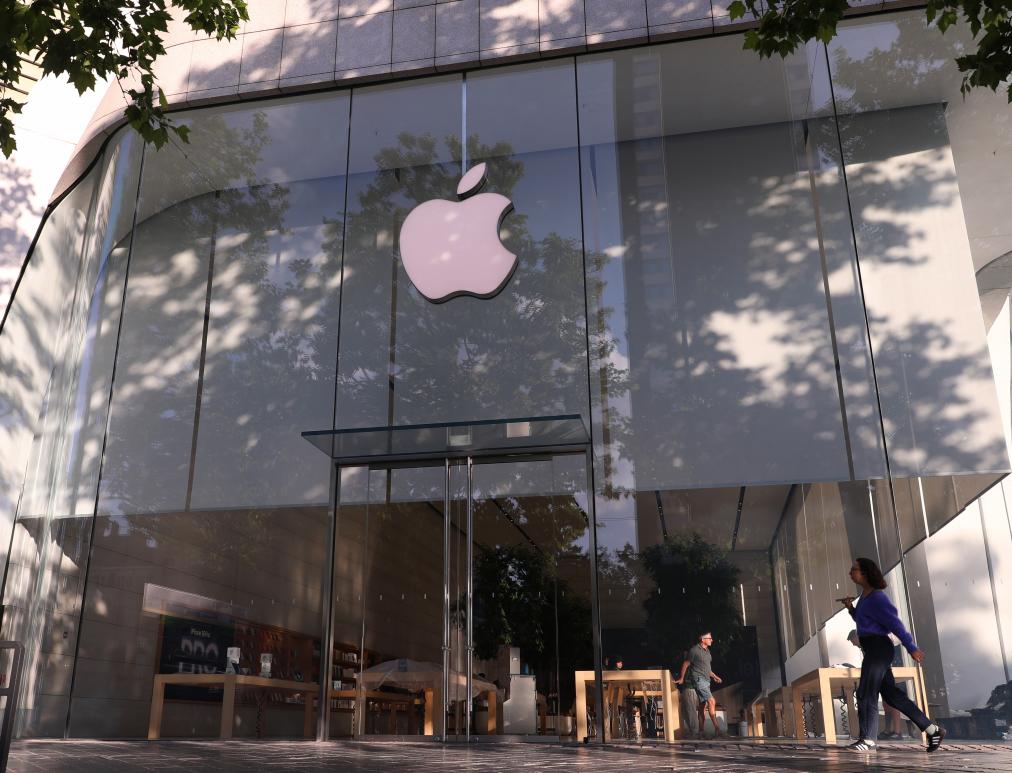 這是5月23日在比利時(shí)布魯塞爾拍攝的一家蘋果門店。新華社記者趙丁喆攝