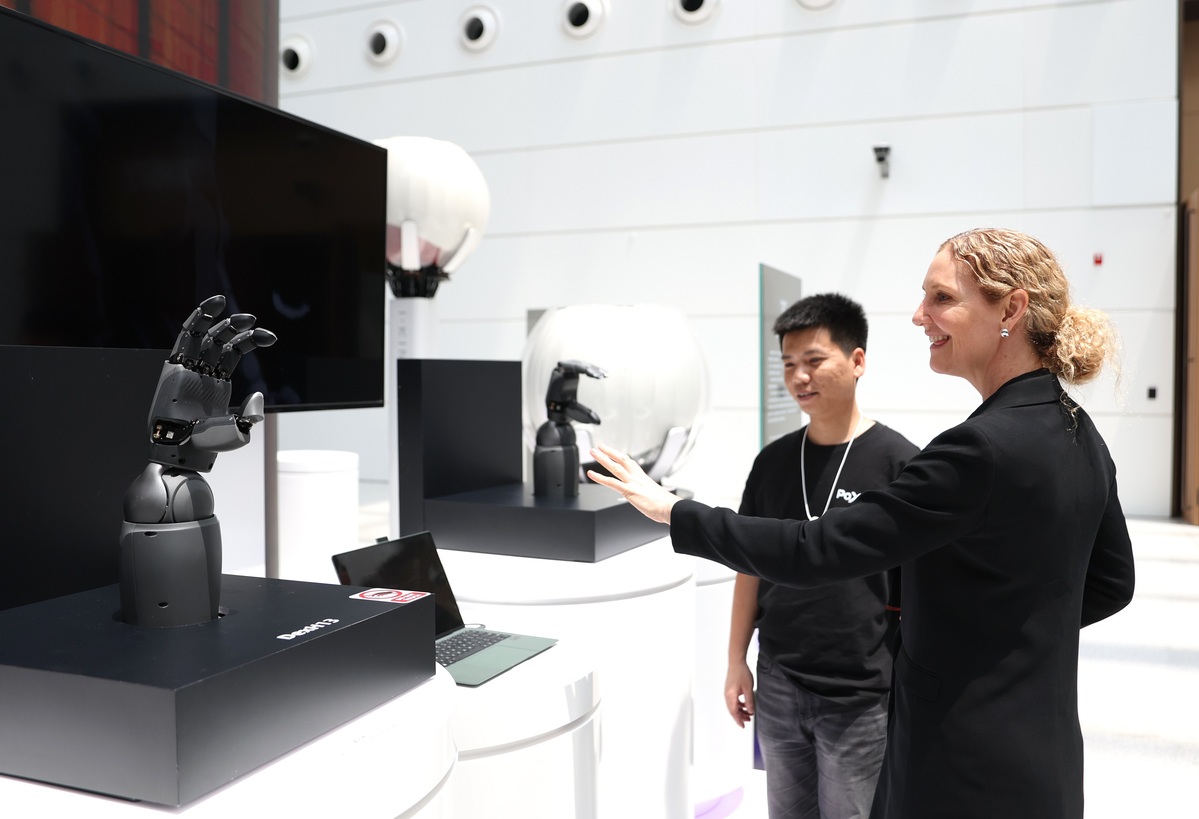 6月23日,嘉賓體驗(yàn)靈巧手視覺遙操互動(dòng)。中國日?qǐng)?bào)記者 鄒紅 攝