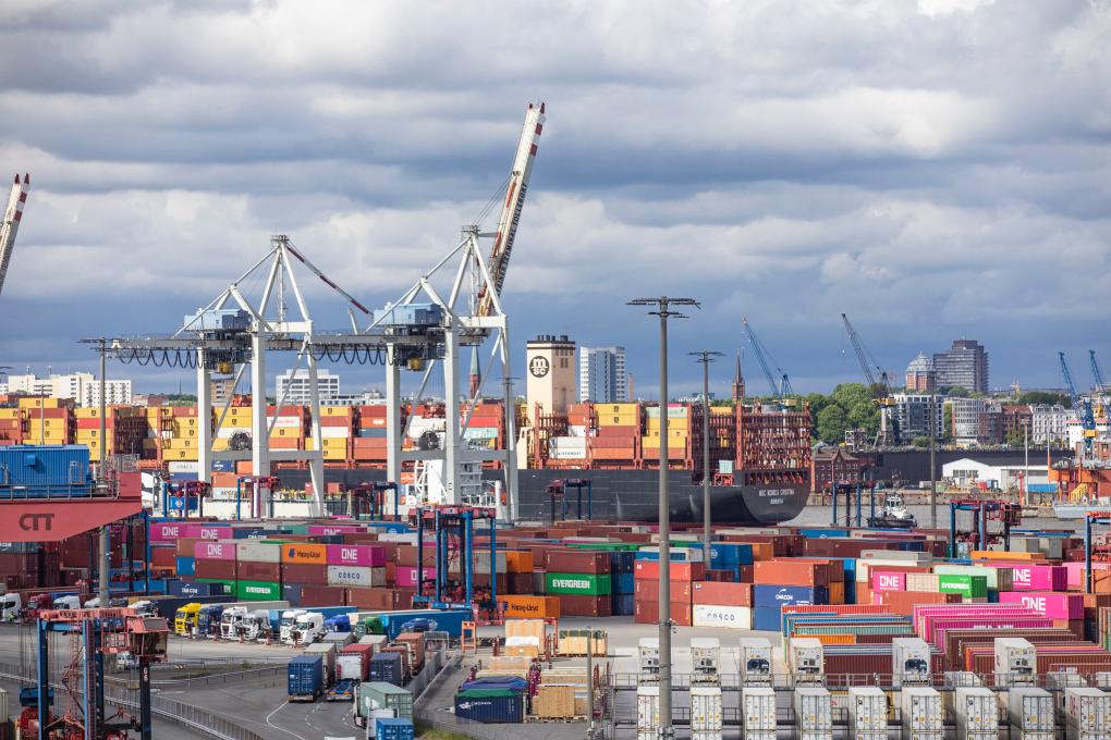 這是5月28日拍攝的德國(guó)漢堡港口與物流股份公司旗下漢堡港CTT集裝箱碼頭景象。新華社記者張帆攝
