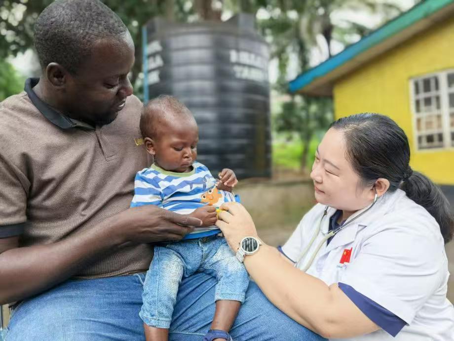中國援助塞拉利昂醫(yī)療隊專家為當?shù)貎和丛\