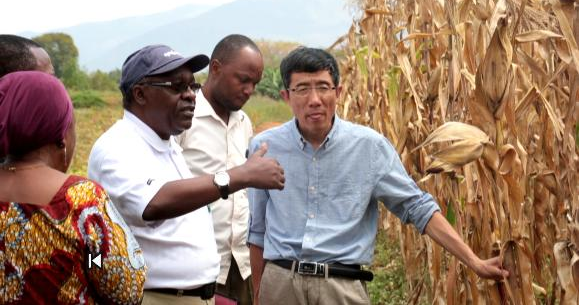 中國農業(yè)專家在坦桑尼亞指導當?shù)厝罕娫苑N玉米