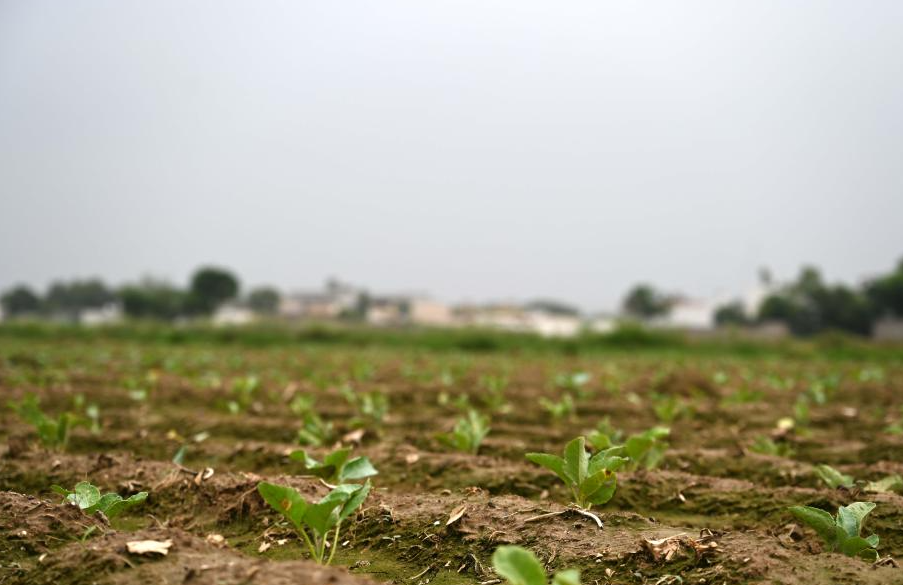 巴基斯坦旁遮普省的阿托克區(qū)土地里正在生長(zhǎng)的中國(guó)花椰菜幼苗。(圖片來(lái)源:新華社)