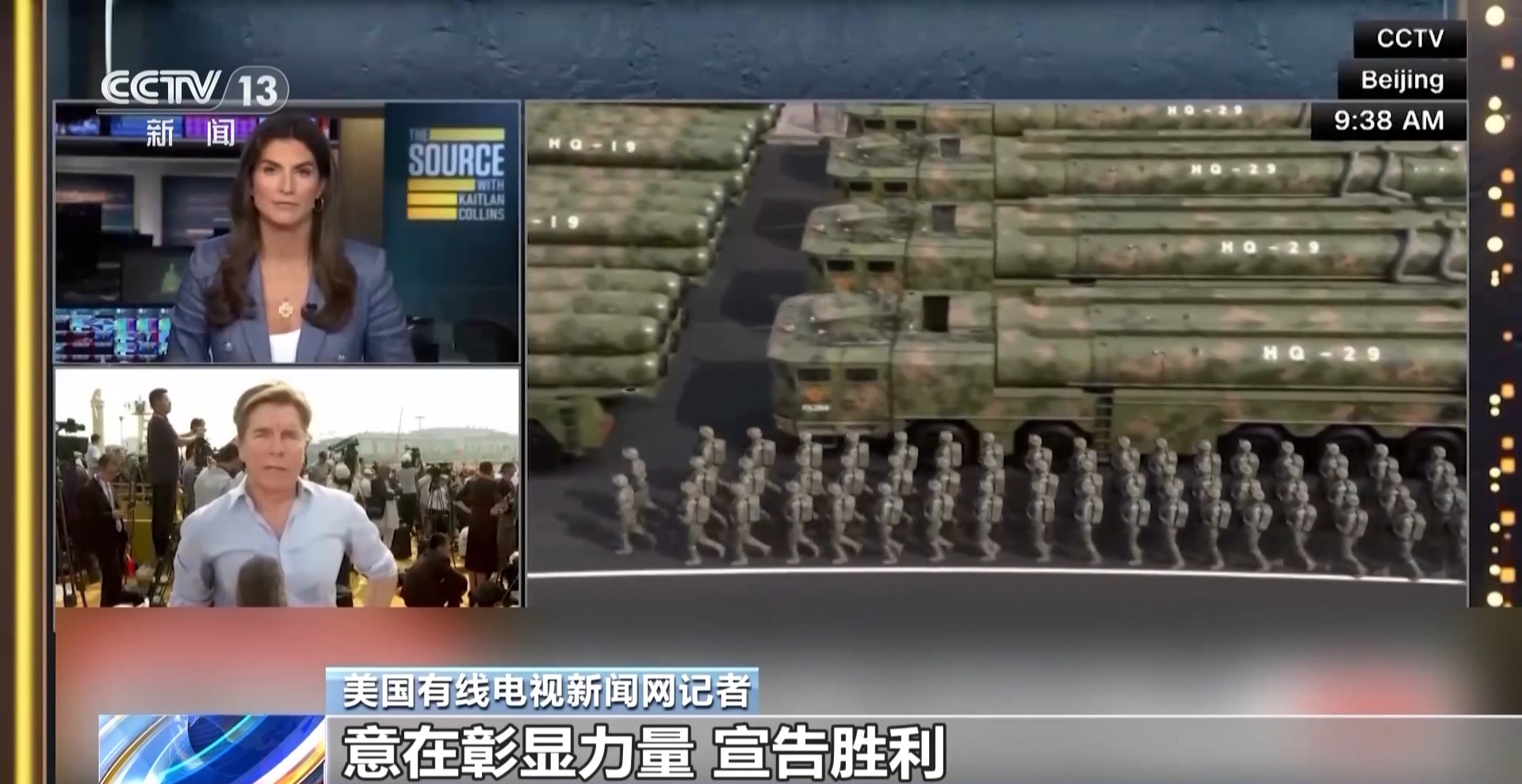 美國(guó)有線電視新聞網(wǎng)主持人:今晚此刻,我們正在關(guān)注北京這場(chǎng)盛大閱兵的現(xiàn)場(chǎng)直播畫(huà)面 。