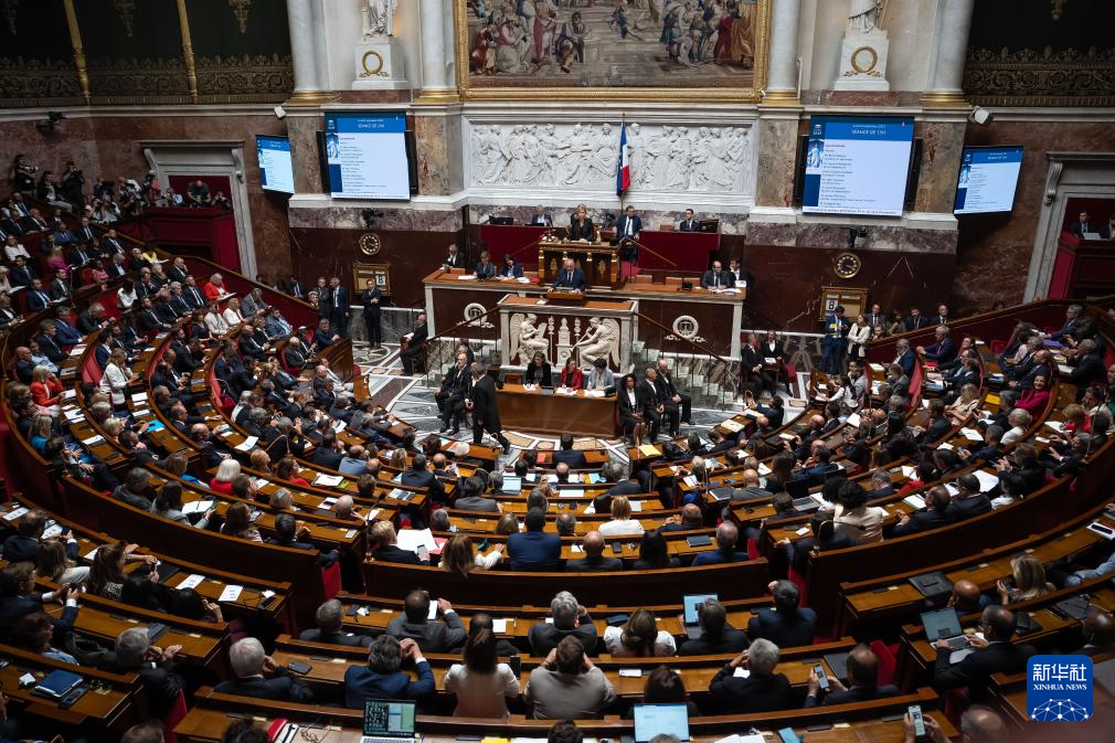 9月8日,法國總理貝魯在位于巴黎的國民議會內(nèi)發(fā)表演講。新華社發(fā)(奧雷利安·莫里薩爾攝)