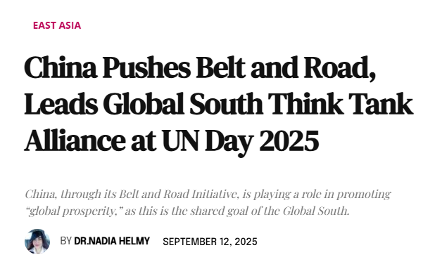 歐洲《現(xiàn)代外交》雜志9月12日刊載了埃及貝尼蘇夫大學(xué)政治與經(jīng)濟(jì)學(xué)院副教授納迪亞·希勒米的署名文章。文章說,共建“一帶一路”倡議正在推動(dòng)全球繁榮,這是全球南方國家的共同目標(biāo)。