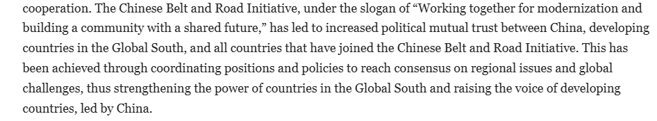 文章注意到,中國不僅提出與全球南方國家構(gòu)建人類命運(yùn)共同體的新理念和新倡議,還宣布了與全球南方國家開展務(wù)實(shí)合作的新措施,涉及國家治理、工業(yè)化與農(nóng)業(yè)現(xiàn)代化、和平與安全,以及共建“一帶一路”框架下的高質(zhì)量合作等新議題,以實(shí)現(xiàn)互利共贏。