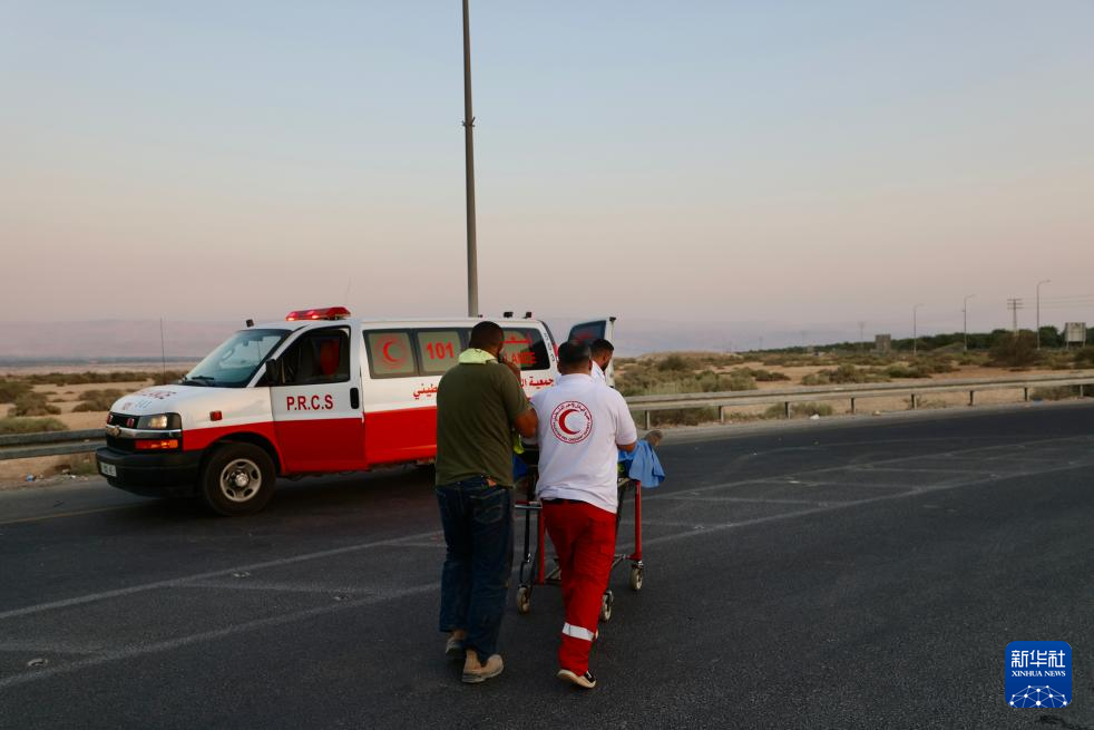 9月18日,急救人員在約旦河西岸地區(qū)與約旦交界處艾倫比橋陸路口岸附近的襲擊現(xiàn)場(chǎng)開(kāi)展工作。新華社發(fā)(賈馬爾·阿瓦德攝)