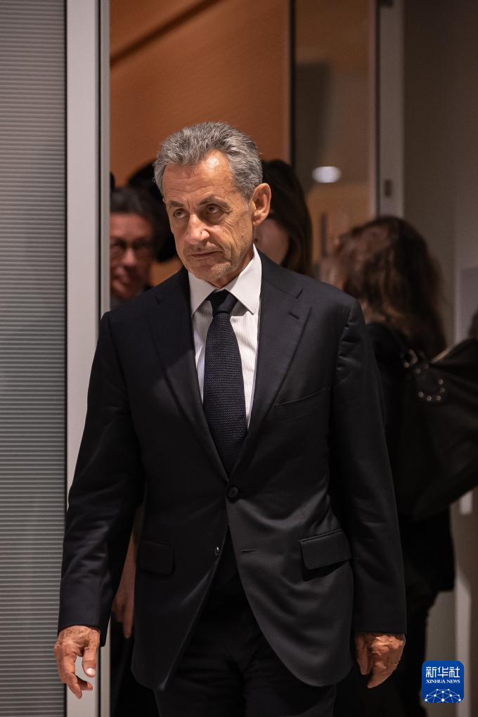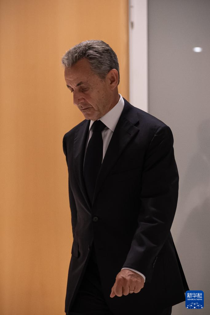 9月25日,在法國(guó)巴黎,法國(guó)前總統(tǒng)薩科齊在庭審后離開(kāi)。新華社發(fā)(奧雷利安·莫里薩爾攝)