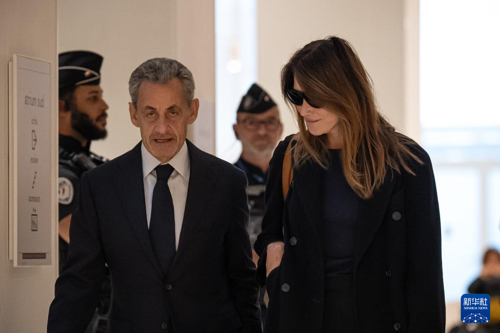 9月25日,法國(guó)前總統(tǒng)薩科齊和夫人布呂尼抵達(dá)巴黎一家法院。新華社發(fā)(奧雷利安·莫里薩爾攝)