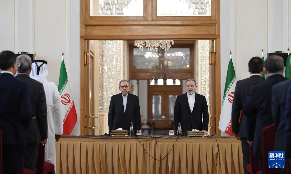 10月5日,在伊朗首都德黑蘭,伊朗外交部長(zhǎng)阿拉格齊(右)出席與多國(guó)駐伊朗外交人員舉行的會(huì)議。新華社記者 沙達(dá)提 攝