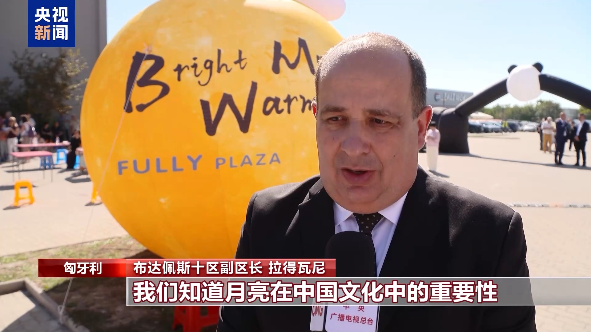匈牙利布達(dá)佩斯十區(qū)副區(qū)長 拉得瓦尼:我們知道月亮在中國文化中的重要性,這個時候兩國人民應(yīng)該一起吃月餅。盡管中國文化與匈牙利文化不同,但我們兩國民眾都彼此敞開心胸,希望了解對方的文化。