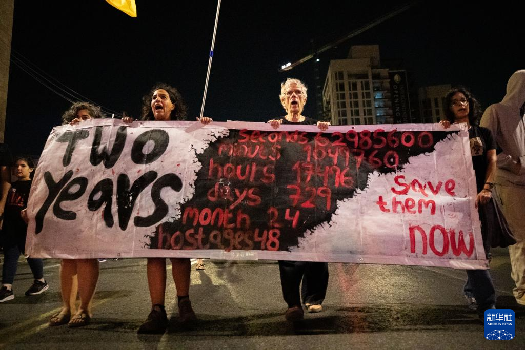 10月4日,人們在耶路撒冷參加游行集會,要求政府迅速在加沙地帶實現(xiàn)?;稹P氯A社記者 陳君清 攝