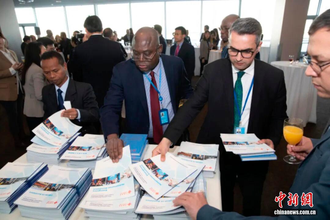 當(dāng)?shù)貢r間2023年4月19日,“全球發(fā)展倡議新進(jìn)展可持續(xù)發(fā)展議程新行動”主題展覽在紐約聯(lián)合國總部舉行。圖為與會嘉賓取閱國合署發(fā)布的新報(bào)告——《國際發(fā)展合作的中國實(shí)踐》。 中新社記者 廖攀 攝
