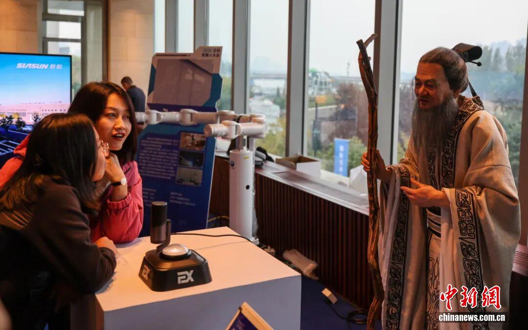 2025年10月17日,2025沈陽機(jī)器人大會在遼寧沈陽開幕。圖為觀眾與交互型仿生人形機(jī)器人孔子互動。 中新社記者 于海洋 攝