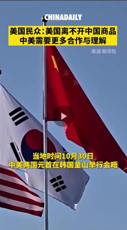 當?shù)貢r間10月30日,中美兩國元首在韓國釜山舉行會晤。中國日報記者走訪美國街頭,了解美國民眾對此次會晤及中美關(guān)系的看法。民眾表示,美國和中國的貿(mào)易互依關(guān)系不容忽視,兩國需要更多溝通與合作。