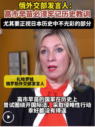 今年是世界反法西斯戰(zhàn)爭勝利80周年。扎哈羅娃指出,世界各地一系列紀(jì)念活動都在提醒世人勿忘歷史、汲取教訓(xùn)。高市早苗必須牢記歷史教訓(xùn),尤其要正視本國歷史中那些不光彩的部分。
