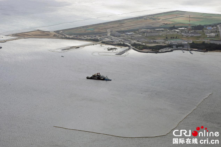 沖繩名護市邊野古近海的大浦灣為實現(xiàn)美軍普天間機場搬遷而推進施工。(圖片來源:視覺中國)