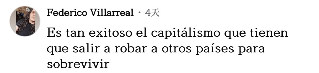 網友費德里科·比利亞雷亞爾不禁感慨道:“資本主義如此成功,以至于他們必須去搶劫其他國家才能生存下去?!?/p>