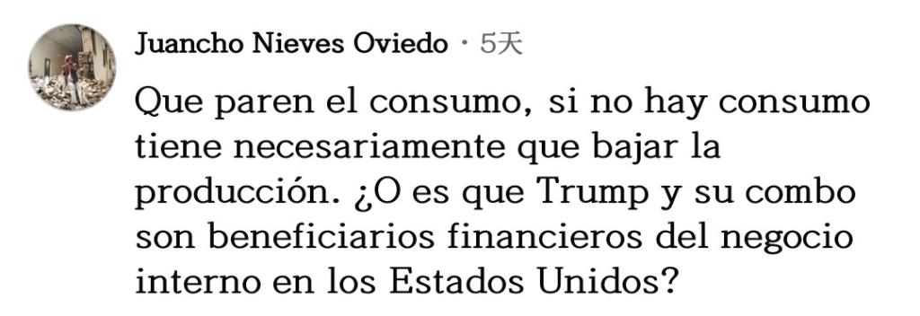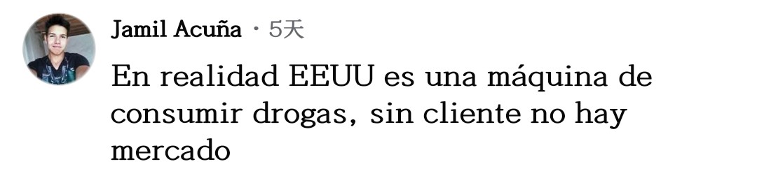 網友胡安喬·奧維多一針見血:“停止(毒品)消費吧,如果沒人消費,生產必然下降。莫非特朗普和他的團隊是美國國內毒品生意的受益者?”