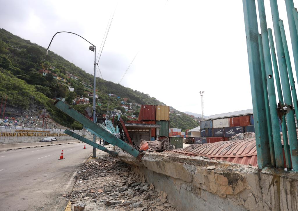 這是1月3日在委內(nèi)瑞拉拉瓜伊拉港拍攝的空襲造成的建筑殘骸。新華社發(fā)
