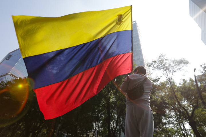 2026年1月10日,在墨西哥首都墨西哥城,當(dāng)?shù)孛癖妳⒓邮就顒印.?dāng)日,部分墨西哥民眾在墨西哥城舉行示威活動,抗議美國對委內(nèi)瑞拉發(fā)動軍事打擊。新華社發(fā)(弗朗西斯科·卡涅多攝)