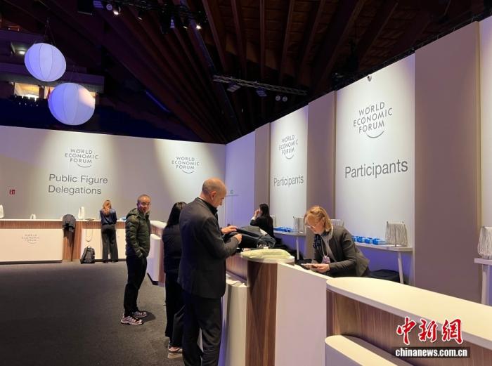 當(dāng)?shù)貢r間1月19日,世界經(jīng)濟(jì)論壇2026年年會在瑞士東部小鎮(zhèn)達(dá)沃斯拉開帷幕。圖為參會代表領(lǐng)取參會證件。中新社記者 馬秀秀 攝