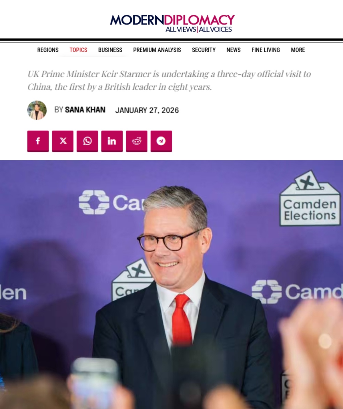 歐洲《現(xiàn)代外交》網(wǎng)站報道稱,斯塔默此行標志著英國外交策略的轉(zhuǎn)變,倫敦正在根據(jù)地緣政治變化重新評估其全球伙伴關(guān)系。報道稱,斯塔默將探索與世界第二大經(jīng)濟體的經(jīng)濟和貿(mào)易合作途徑,旨在吸引投資,擴大英國企業(yè)的市場準入,并與中國就氣候變化、人工智能和公共衛(wèi)生等共同全球關(guān)切展開交流。報道還分析稱,此次訪問展示了中等大國如何通過多元化伙伴關(guān)系來保護本國利益,以應(yīng)對國際關(guān)系中系統(tǒng)性的不確定性。