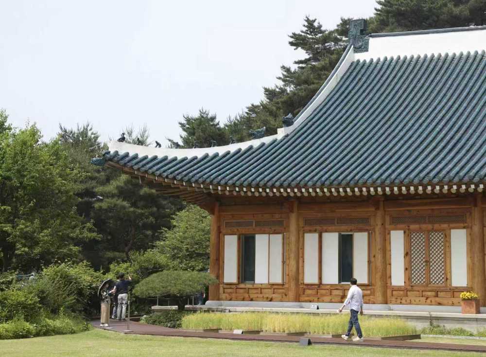 開(kāi)放期間,迎賓館、本館、官邸等核心建筑悉數(shù)對(duì)外開(kāi)放。本館是青瓦臺(tái)的核心建筑,設(shè)有總統(tǒng)辦公室、宴會(huì)廳、接見(jiàn)室等功能空間。其建筑風(fēng)格融匯韓國(guó)傳統(tǒng)審美:藍(lán)色韓式瓦片覆蓋的標(biāo)志性屋頂最為醒目。昔日只有外國(guó)政要、部長(zhǎng)級(jí)以上高官方能踏入的本館,如今成了最熱門(mén)的“打卡點(diǎn)”。