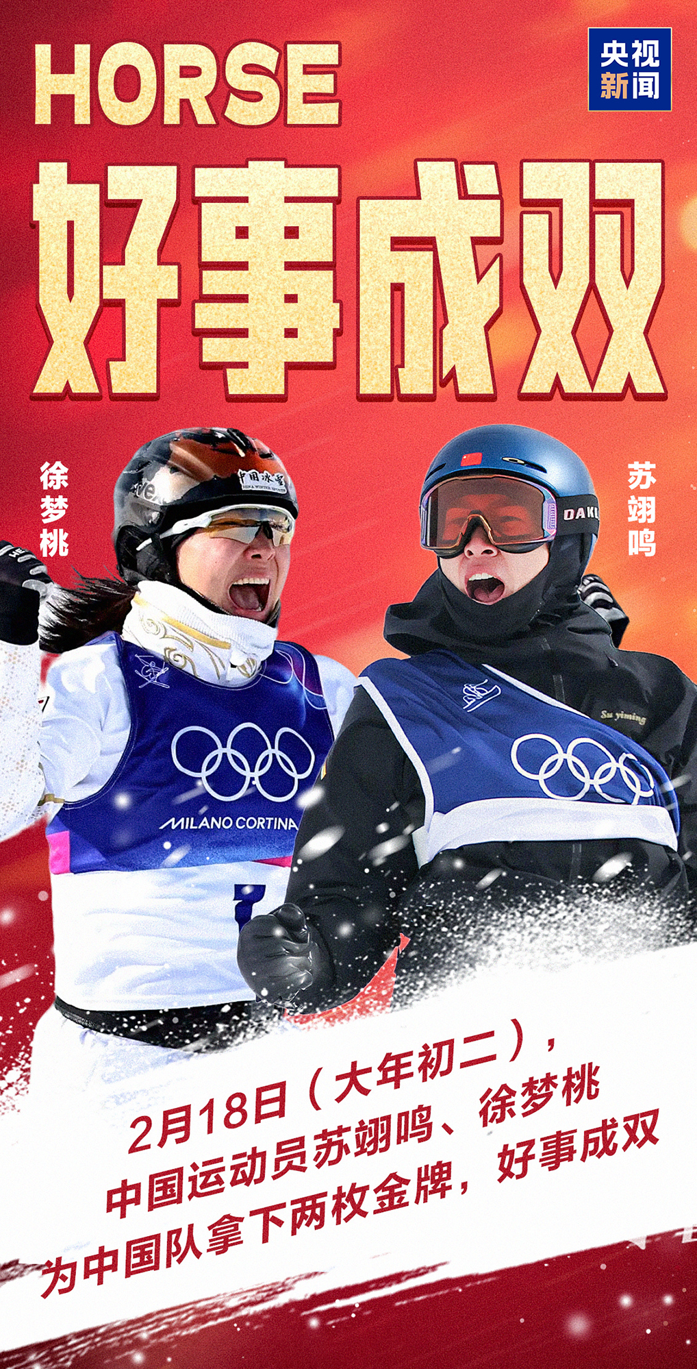 北京時間2月18日,米蘭-科爾蒂納冬奧會單板滑雪男子坡面障礙技巧決賽,22歲的中國選手蘇翊鳴在自己的生日當天,憑借第一輪得分82.41的成績獲得冠軍,為中國體育代表團奪得本屆冬奧會首枚金牌。緊接著,中國選手徐夢桃以112.90分奪得米蘭-科爾蒂納冬奧會自由式滑雪女子空中技巧金牌。中國代表團在一晚奪兩金!這份榮耀背后是兩位運動員對冰雪運動日復一日的熱愛與堅持。