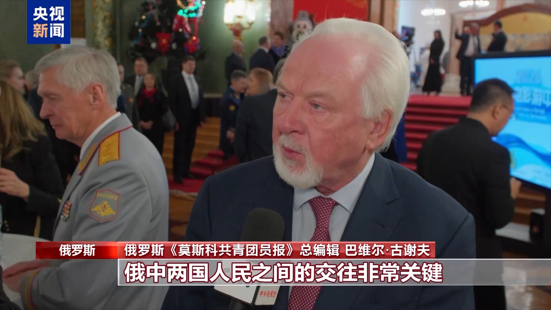俄羅斯《莫斯科共青團員報》總編輯 巴維爾·古謝夫:俄中兩國人民之間的交往非常關(guān)鍵。如今越來越多俄羅斯民眾赴華旅游、進行商務(wù)洽談、拓展合作,新聞工作者也不例外。我謹在此祝賀大家春節(jié)快樂。