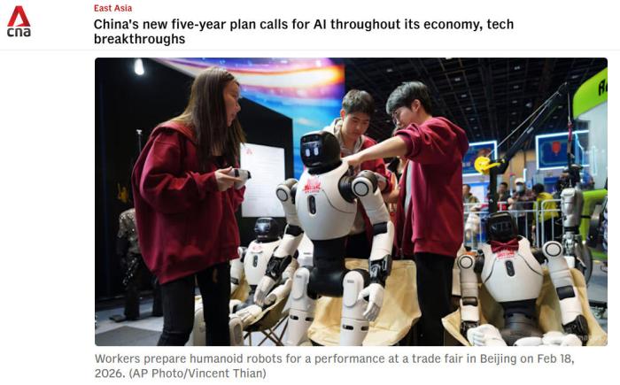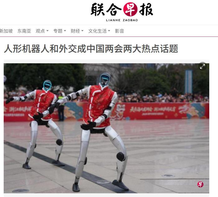 新加坡《聯(lián)合早報》報道稱,中國多家人形機器人公司在春晚舞臺上的武術(shù)表演吸引全球目光,相關(guān)產(chǎn)業(yè)獲得輿論高度關(guān)注,這股熱潮延續(xù)至2026年中國全國兩會上,不少人工智能相關(guān)的企業(yè)人士在會場外成為媒體格外關(guān)注的對象。