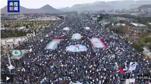 總臺報道員 哈桑·巴姆什穆斯:與許多國家舉行的集會一樣,在也門首都薩那南部的七十廣場, 當?shù)孛癖娨才e行了大規(guī)模游行活動。當前,隨著美以持續(xù)對伊朗發(fā)動軍事打擊,外界對戰(zhàn)爭外溢的擔憂正在加劇。