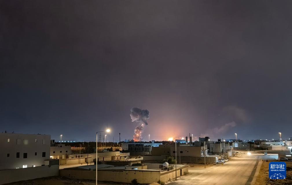 3月18日晚,沙特首都利雅得南部地區(qū)遇襲現(xiàn)場升起濃煙。新華社發(fā)