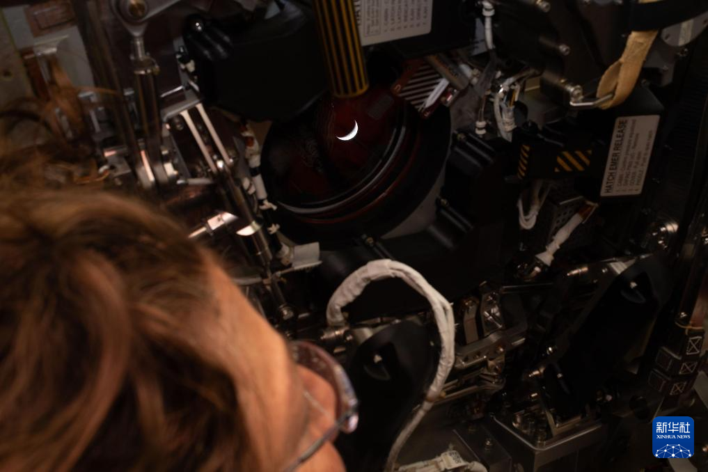 4月6日,美國航空航天局宇航員克里斯蒂娜·科克從執(zhí)行“阿耳忒彌斯2號”載人繞月飛行任務的“獵戶座”飛船上觀看地球。新華社發(fā)(美國國家航空航天局供圖)