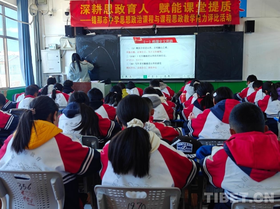 錯那市中學(xué)初一三班的學(xué)生在上課