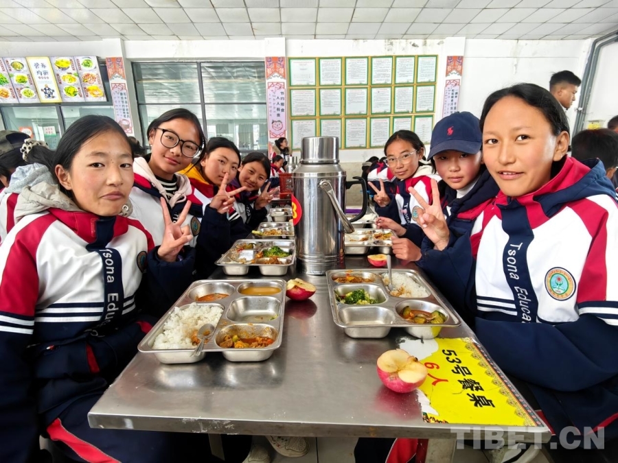 錯那市中學(xué)的學(xué)生們吃飯時主動向記者提出合影
