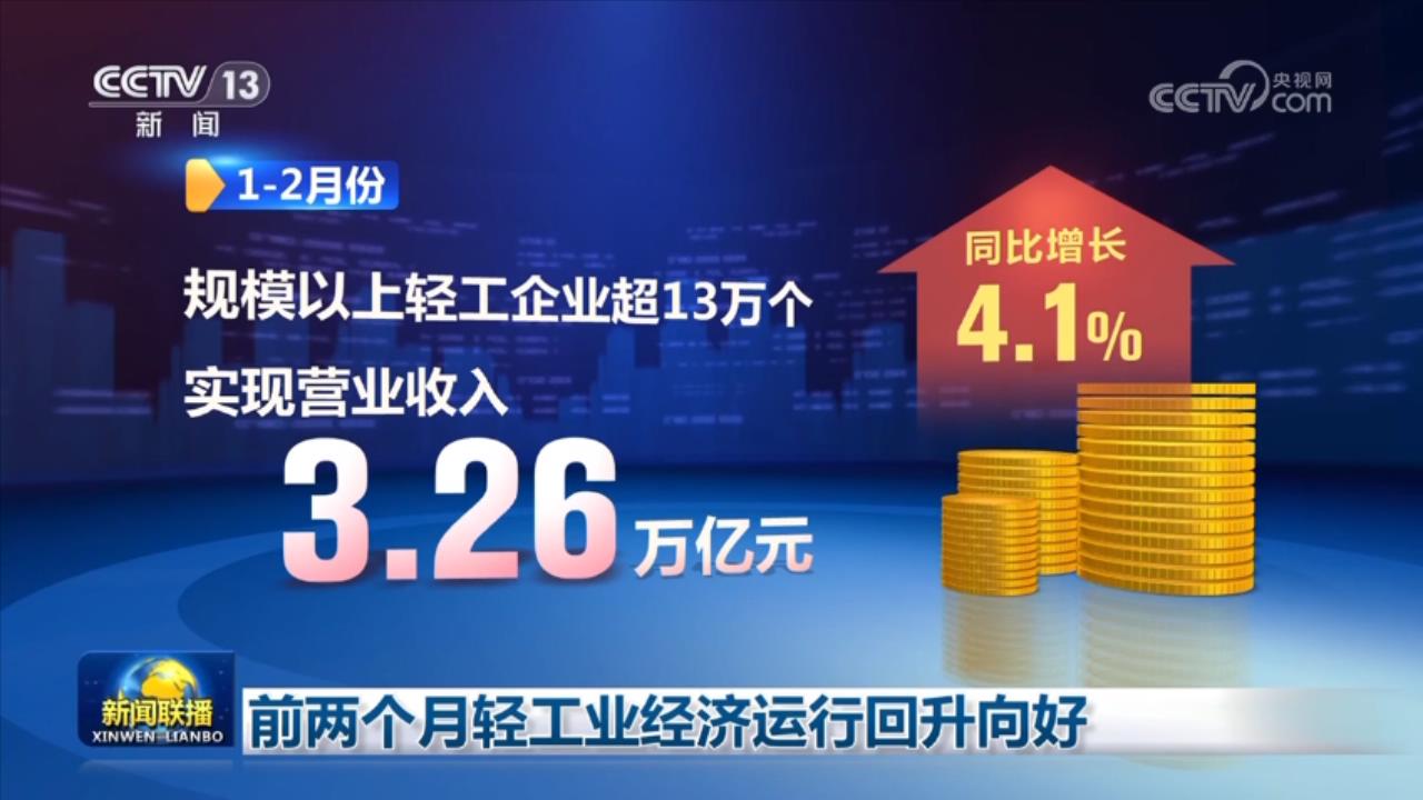 中國輕工業(yè)聯(lián)合會(huì)發(fā)布數(shù)據(jù)顯示,今年前兩個(gè)月,消費(fèi)品制造業(yè)發(fā)展動(dòng)力增強(qiáng),帶動(dòng)輕工業(yè)經(jīng)濟(jì)運(yùn)行回升向好。1—2月,規(guī)模以上輕工企業(yè)超13萬個(gè),實(shí)現(xiàn)營業(yè)收入3.26萬億元,同比增長4.1%。